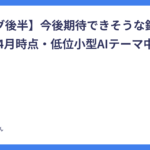 - **メック(4971)**など半導体パッケージ後工程材料株:AIサーバー向けで世界シェア高く、ユニチカ級の需給逼迫が予想されるニッチ銘柄。