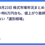 2026年4月23日 株式市場市況まとめ:日経平均は一時6万円台も、値上がり銘柄は極端に少ない「選別相場」